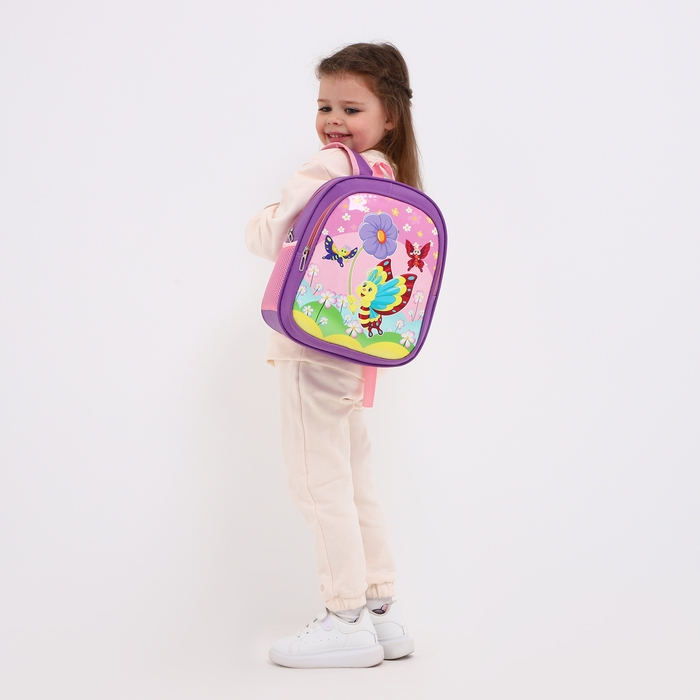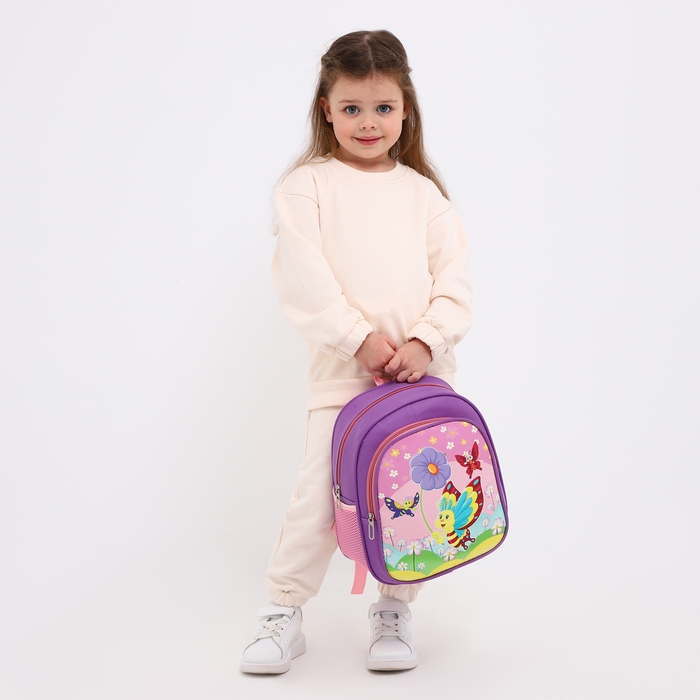 Рюкзак детский на молнии, 3 наружных кармана, цвет фиолетовый