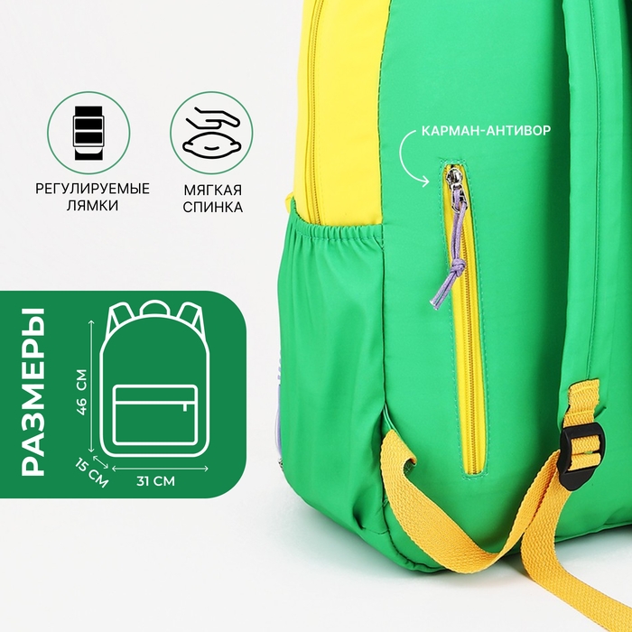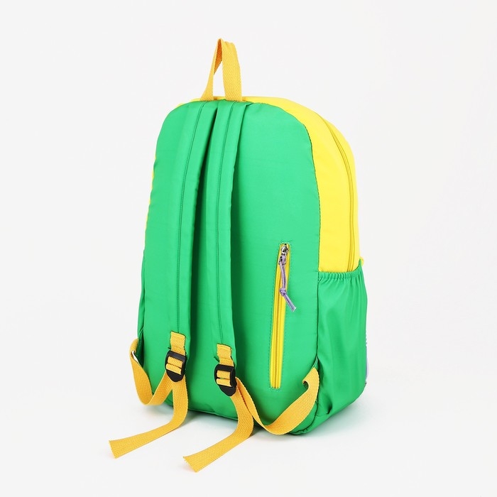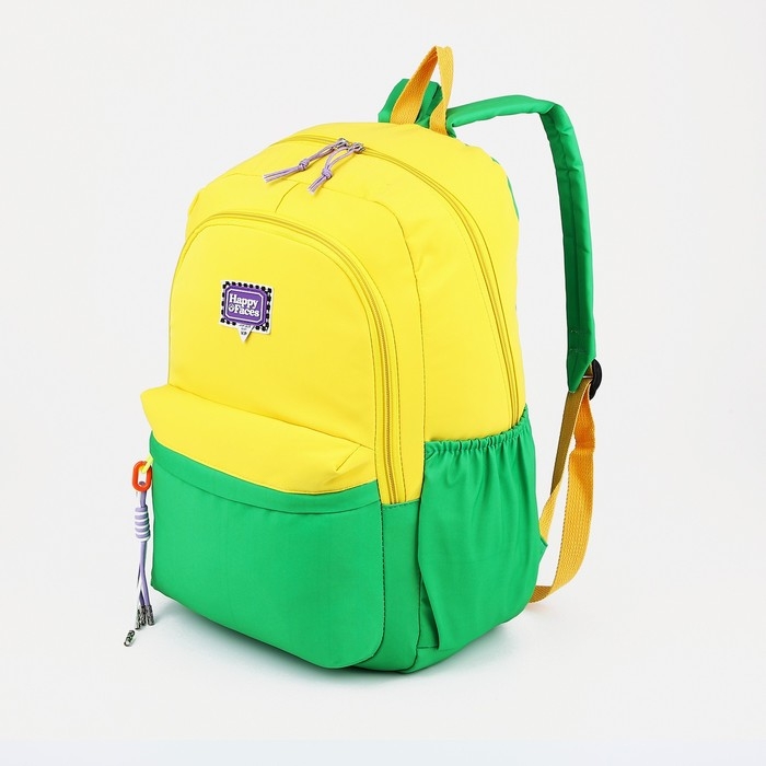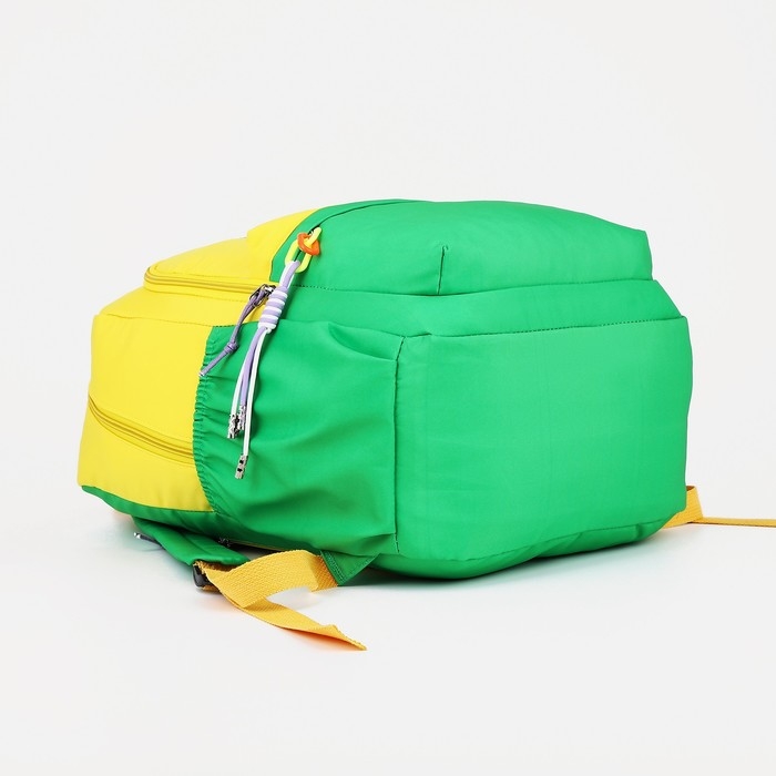 Рюкзак школьный 2 отдела на молнии, 4 наружных кармана, цвет жёлтый/зелёный
