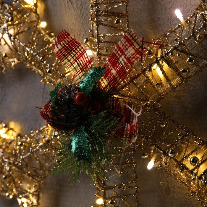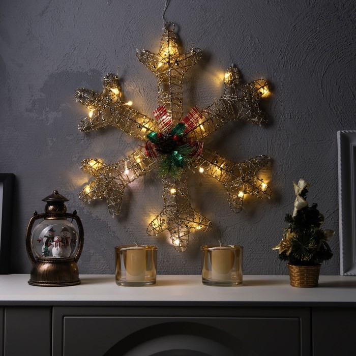 Светодиодная фигура «Снежинка с бусинами» 50 см, металл, 220 В, свечение тёплое белое