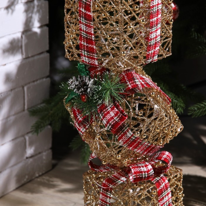 Светодиодная фигура «Башня из подарков» 15.5 × 80 × 15.5 см, металл, текстиль, 220 В, свечение тёплое белое