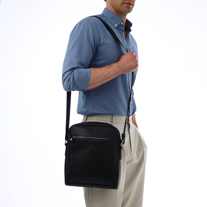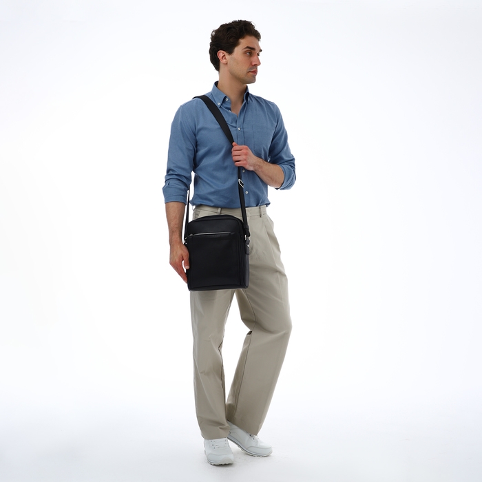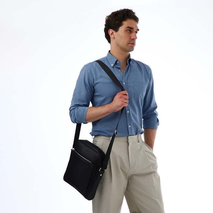 Сумка мужская через плечо TEXTURA, искусственная кожа, цвет чёрный