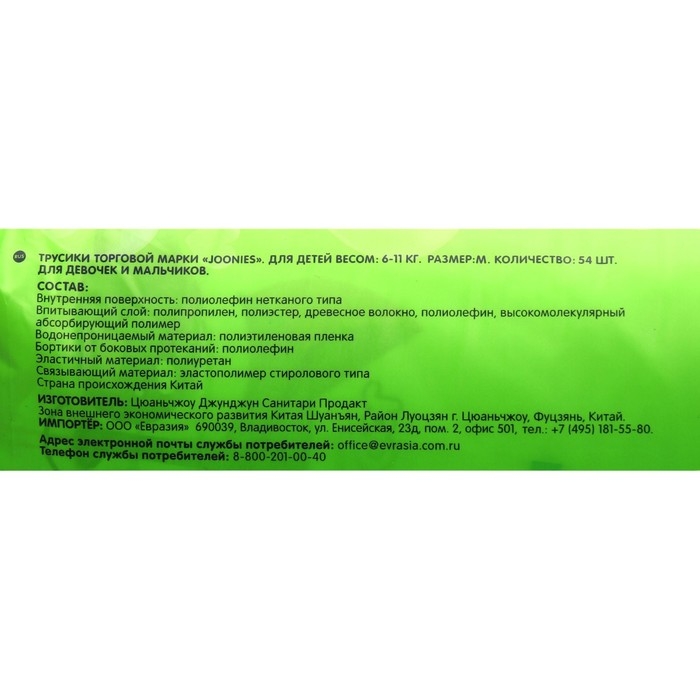 Подгузники-трусики JOONIES Comfort, размер M (6-11 кг) - это удобные и функциональные подгузники, предназначенные для детей с весом от 6 до 11 кг. Каждая упаковка содержит 54 шт подгузников-трусиков.