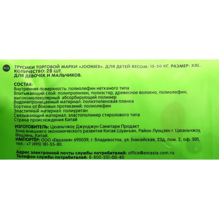 Подгузники-трусики JOONIES Comfort, размер XXL (15-20 кг), 28 шт.
