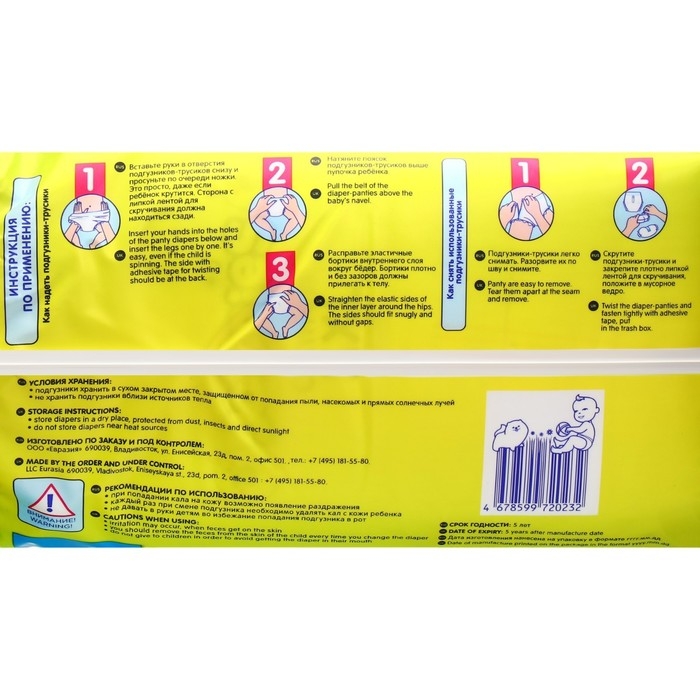 Подгузники-трусики JOONIES Comfort, размер XXL (15-20 кг) - это удобные и функциональные подгузники, предназначенные для детей с весом от 15 до 20 кг. Каждая упаковка содержит 28 шт подгузников-трусиков.