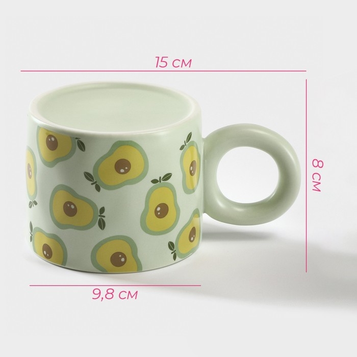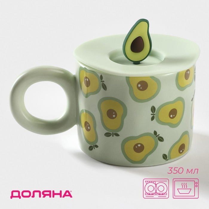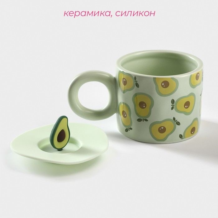 Кружка керамическая с силиконовой крышкой Доляна «Авокадо», 350 мл, цвет зелёный