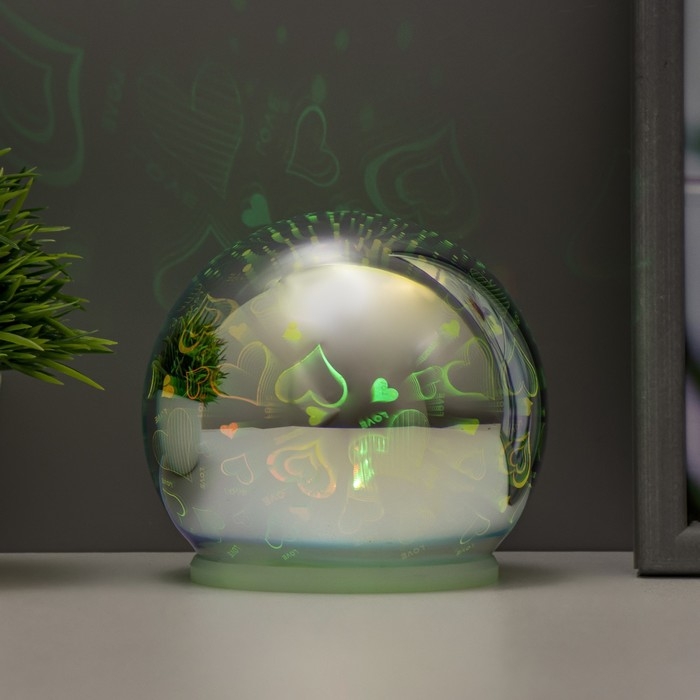 Ночник "Зеркальный шар любовь" LED RGB от батареек 2хАА хром 10х10х10см RISALUX