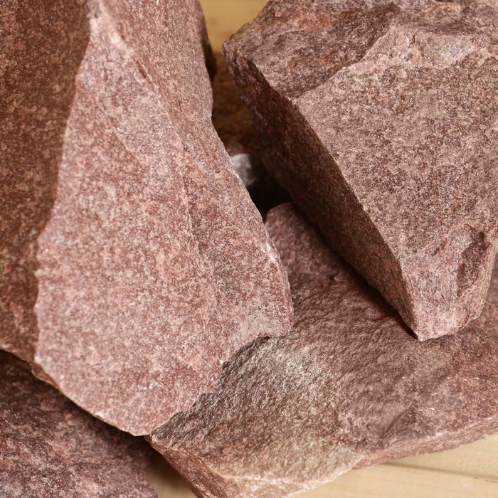 Камень для бани Кварцит малиновый колотый 20 кг, фракция 70-120 мм, коробка