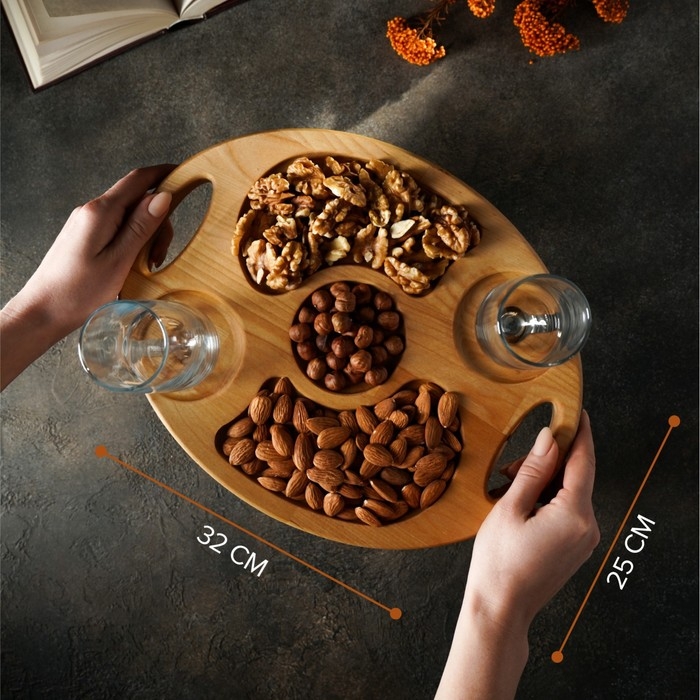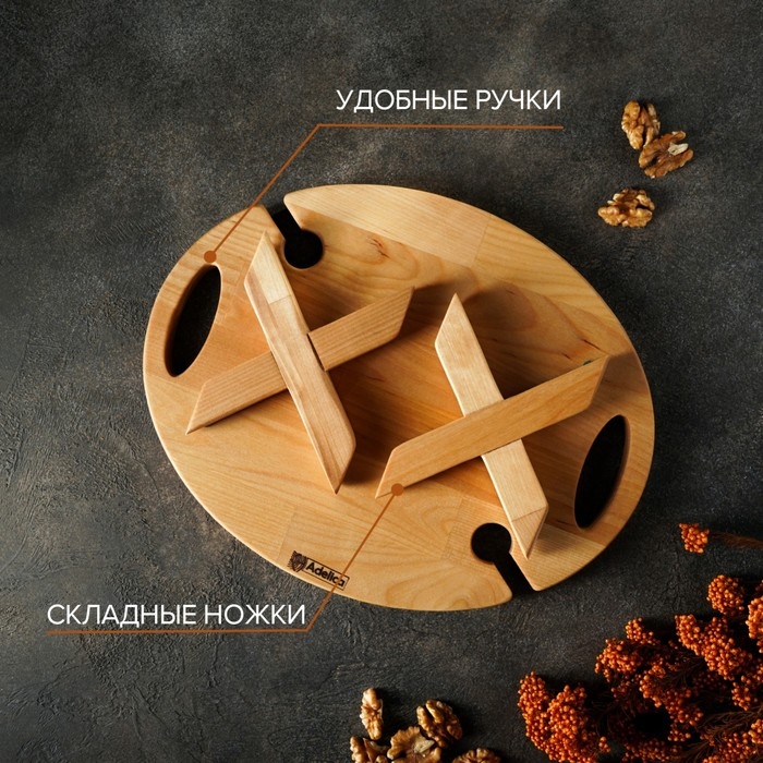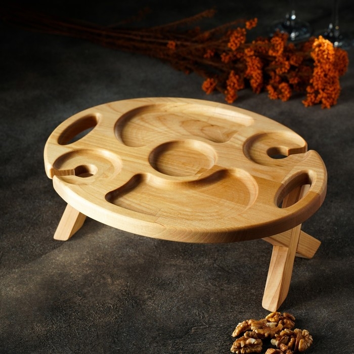 Столик - поднос для подачи вина и чая Adelica, с менажницей и складными ножками, на 2 персоны, пропитана минеральным маслом, 32×25×1,8 см, в подарочной упаковке, берёза