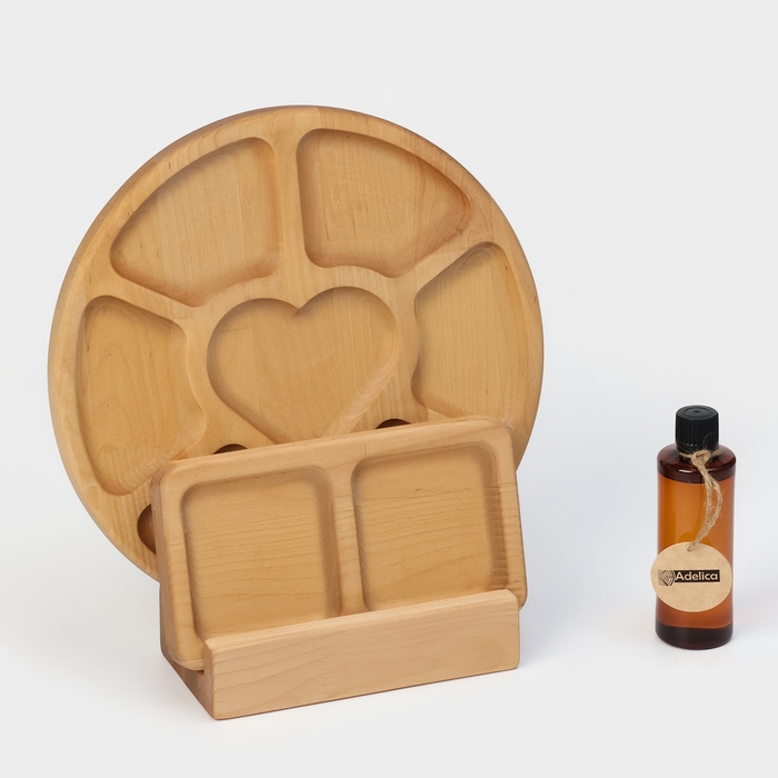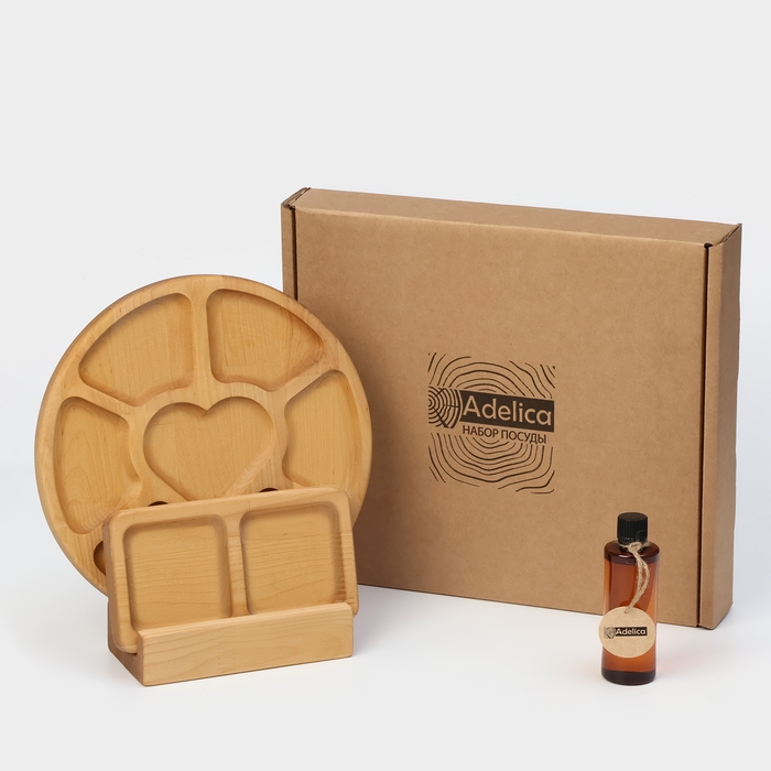 Подарочный набор деревянной посуды Adelica, менажница 6 секций, менажница 2 секции, подставка для посуды, масло в подарок, берёза