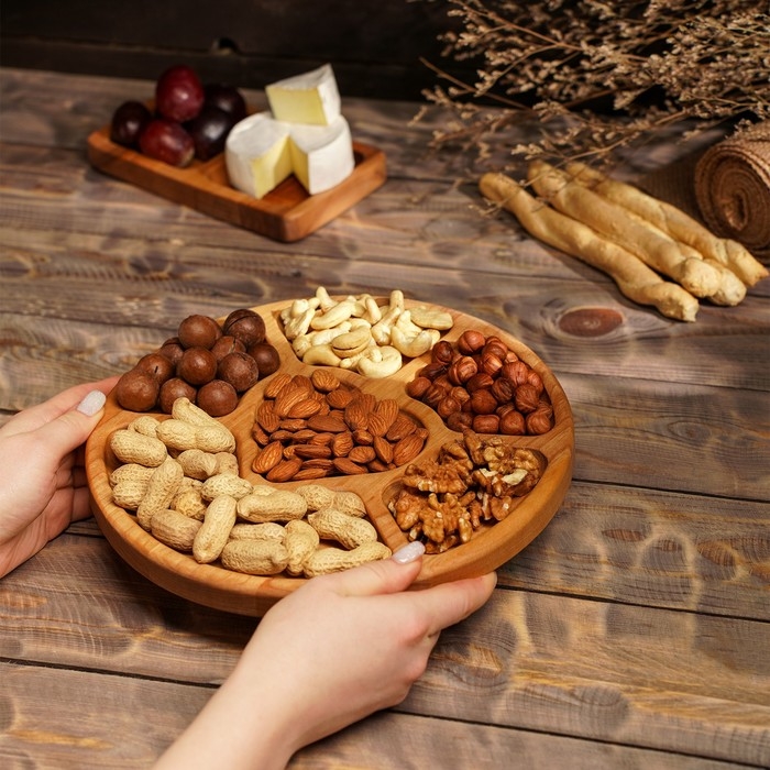 - Менажницу нужно обязательно мыть вручную в тёплой воде. Замачивание изделия в раковине повредит его: от воды древесина может испортиться.