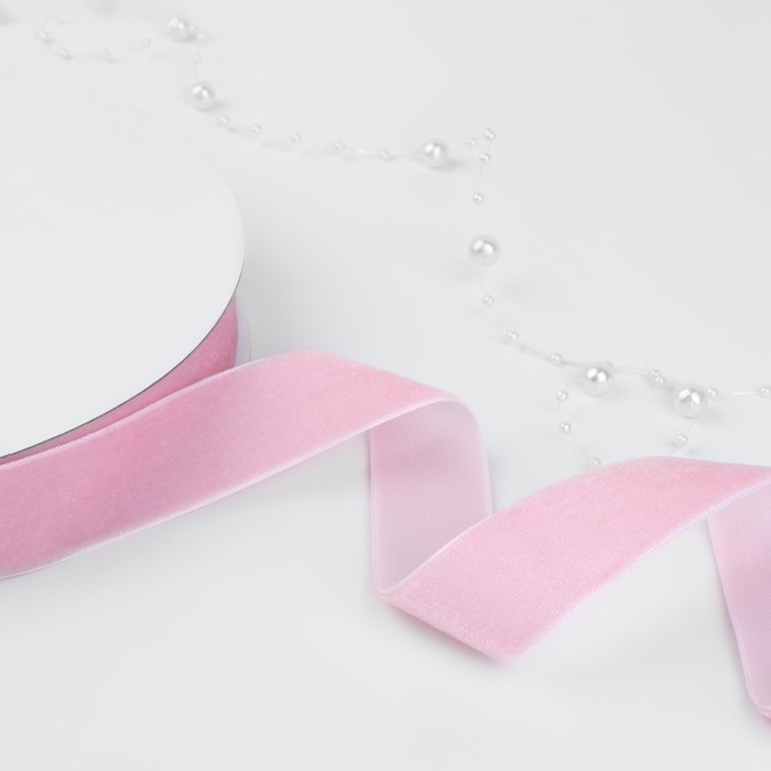 Лента бархатная, 25 мм, 18 ± 1 м, цвет розовый №02