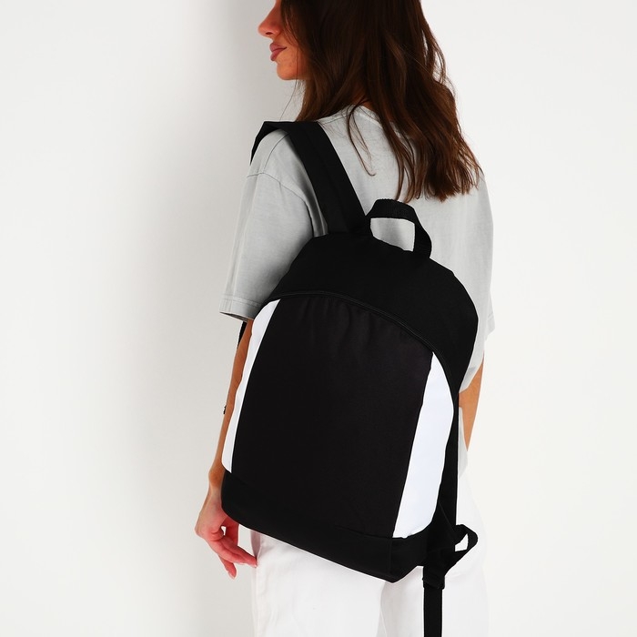 Рюкзак школьный текстильный 46х30х10 см, вертикальный карман, цвет черно-белый