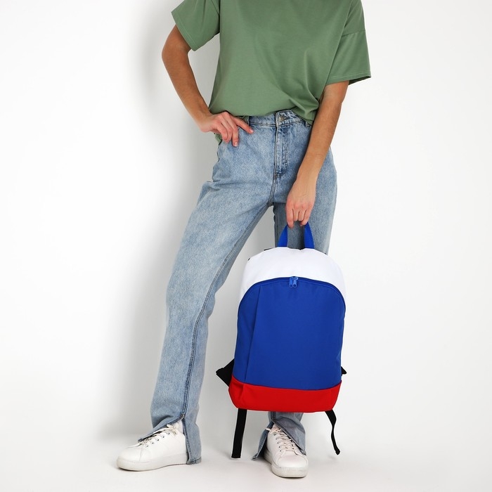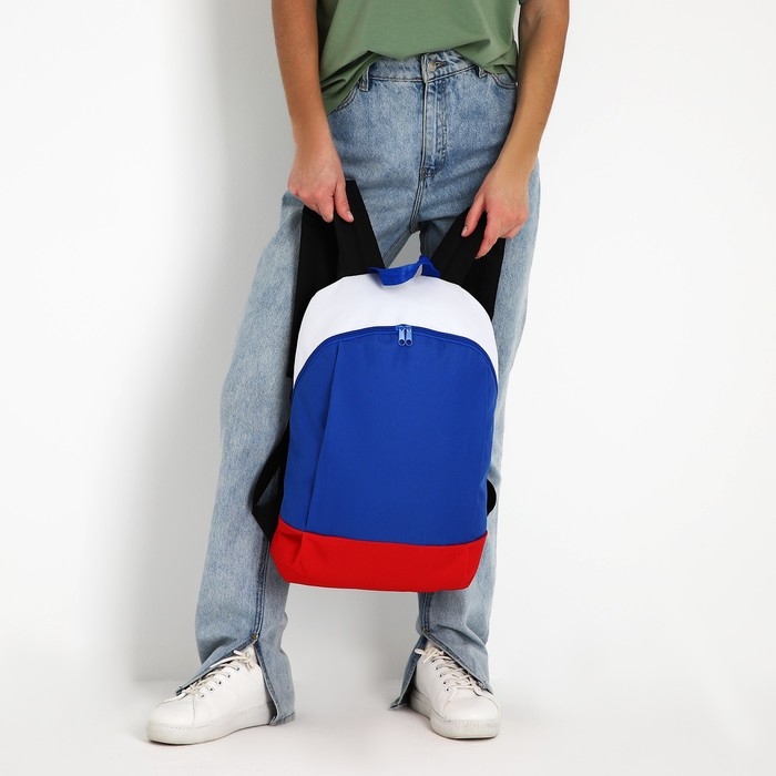 Рюкзак школьный текстильный «Россия», 46х30х10 см, вертикальный карман, цвет красный, синий, белый