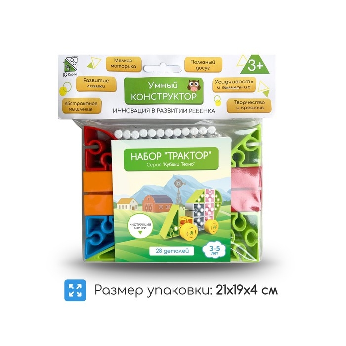 Конструктор Iq Kubiki «Трактор», 28 деталей