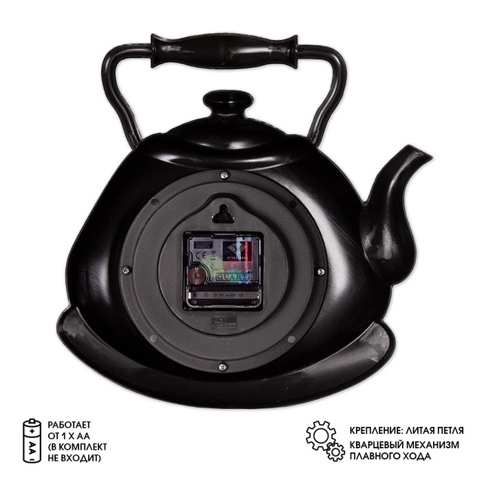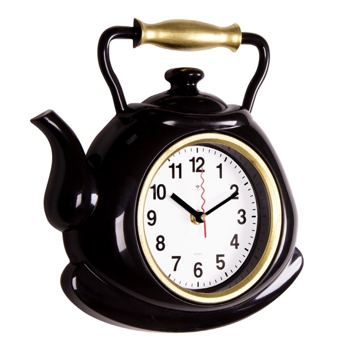 Часы настенные интерьерные для кухни "Чайник", бесшумные, 27 х 28.5 см, черные, АА