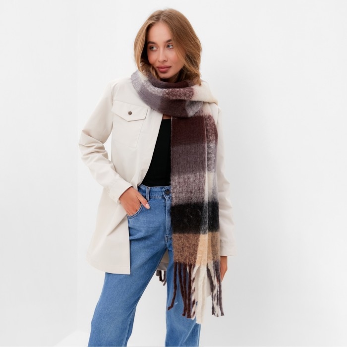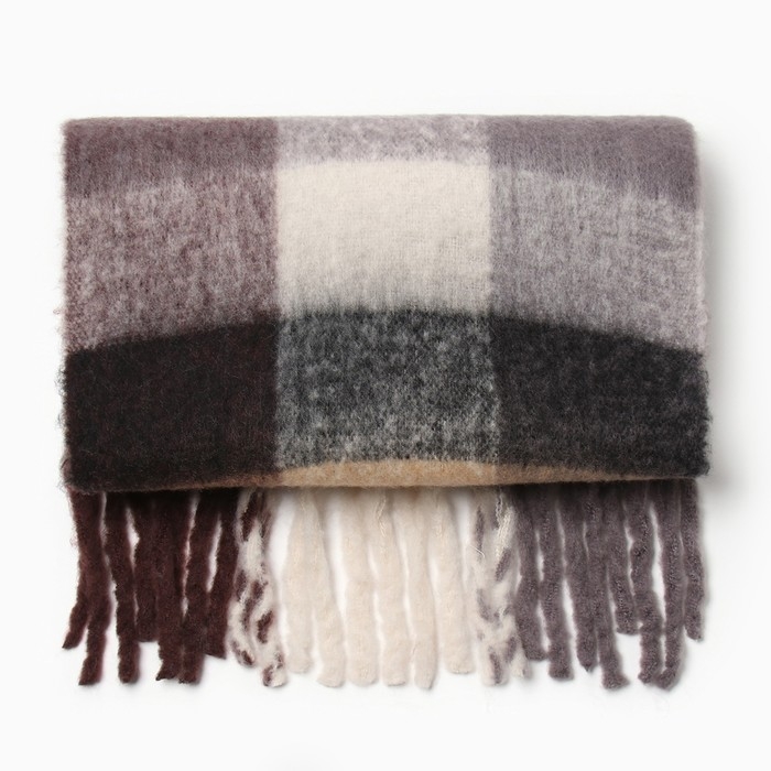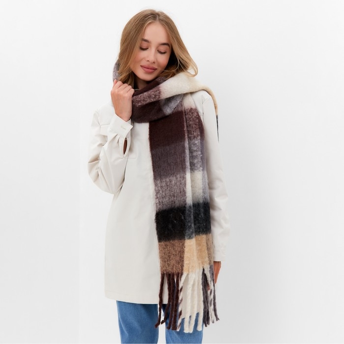 Шарф зимний объемный с кистями MINAKU клетка 210*38+18 см
