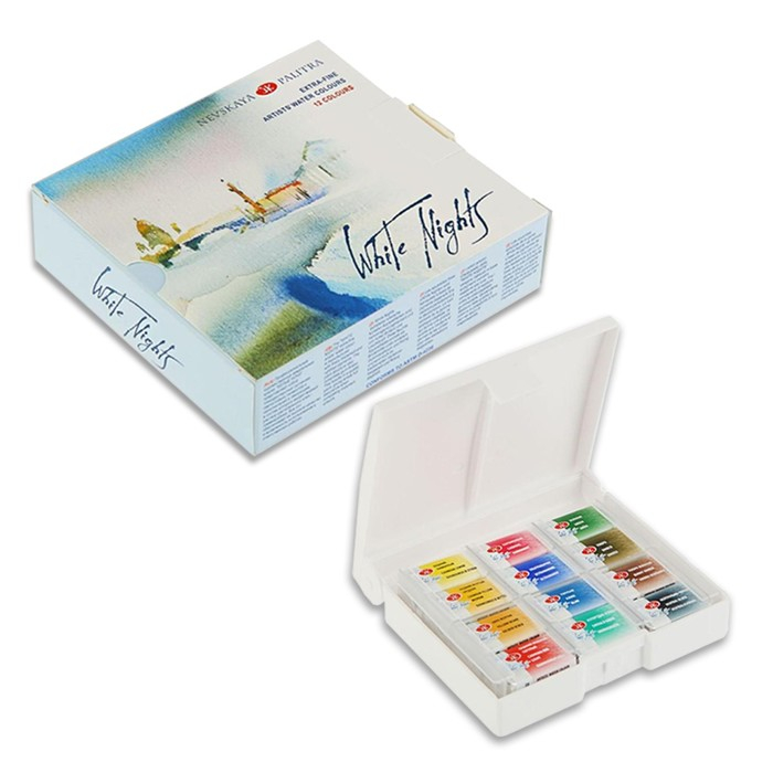 Акварель художественная в кюветах, 12 цветов х 2.5 мл, ЗХК "Белые ночи", пластиковая палитра, 1942036