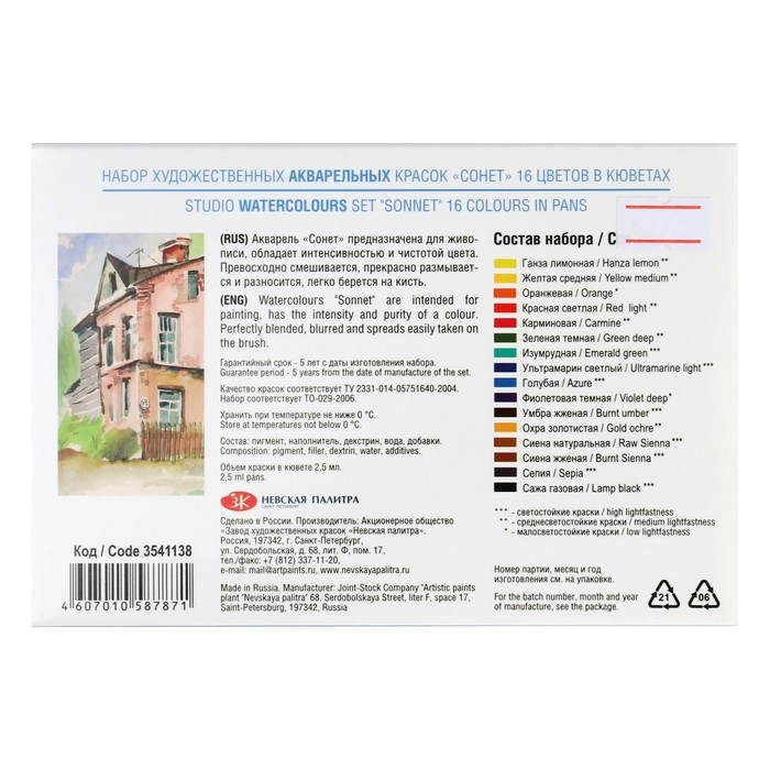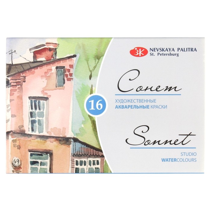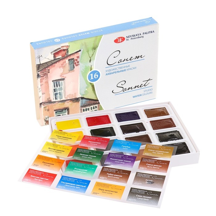Акварель художественная в кюветах, 16 цветов х 2.5 мл, ЗХК "Сонет", 3541138