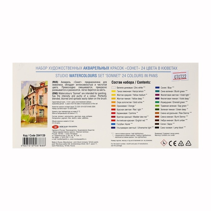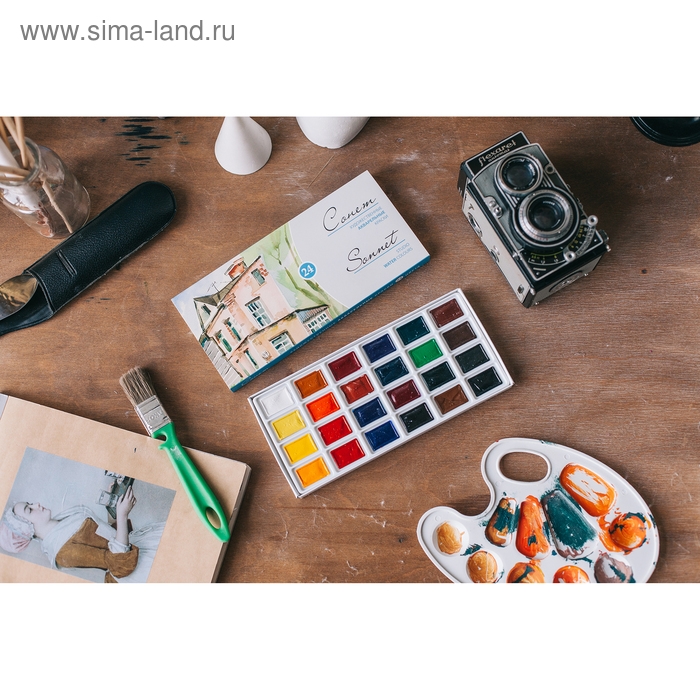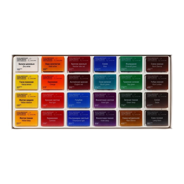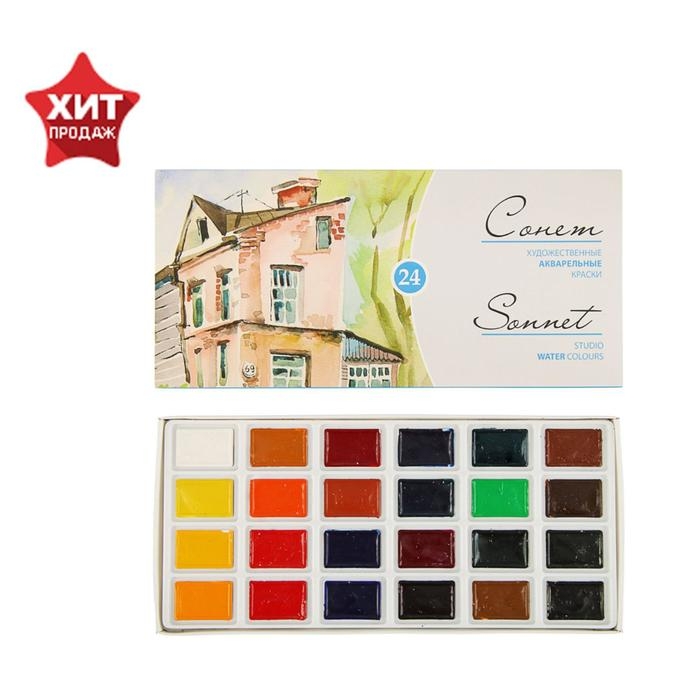 Акварель художественная в кюветах, 24 цвета х 2.5 мл, ЗХК "Сонет", 3541139