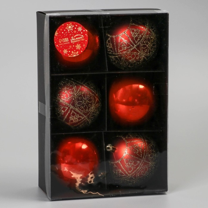 Набор шаров пластик d-7,5 см, 6 шт "Морозная росшивь" орнамент, коричневый