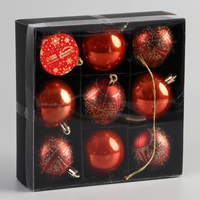Набор шаров пластик d-5,5 см, 9 шт "Морозная росшивь" орнамент, коричневый