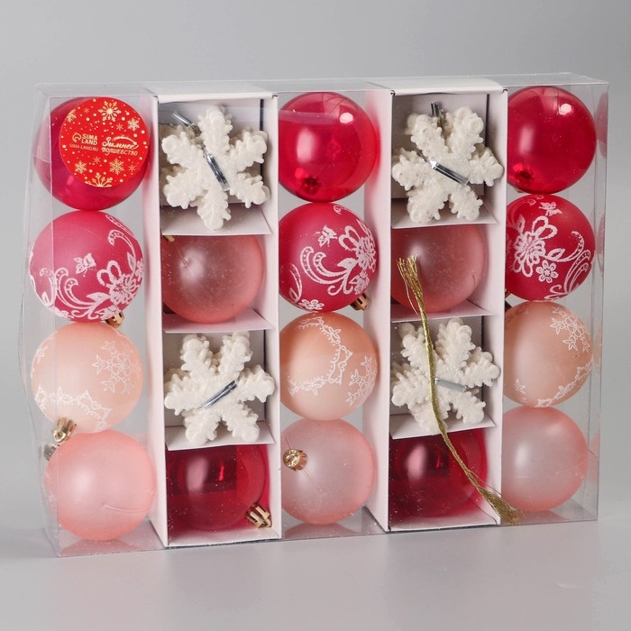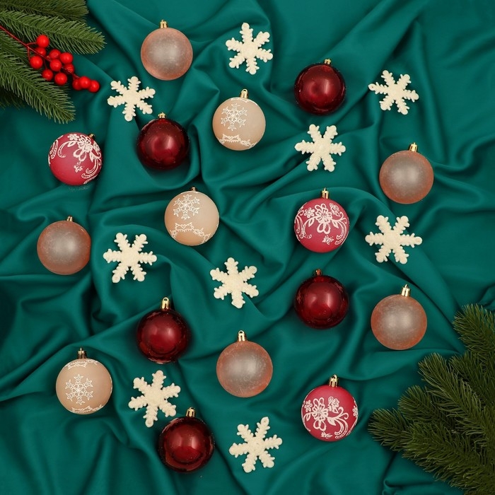 Набор украшений пластик 40 шт "Снежная феерия" морозец, d-6 см, снежинка 6 см, микс