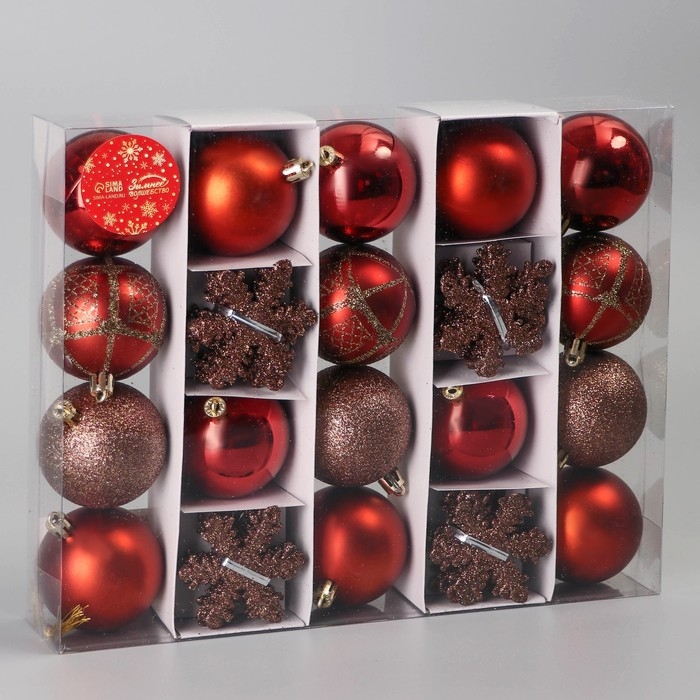 Набор украшений пластик 40 шт "Снежная феерия" грация, d-6 см, снежинка 6 см, коричневый