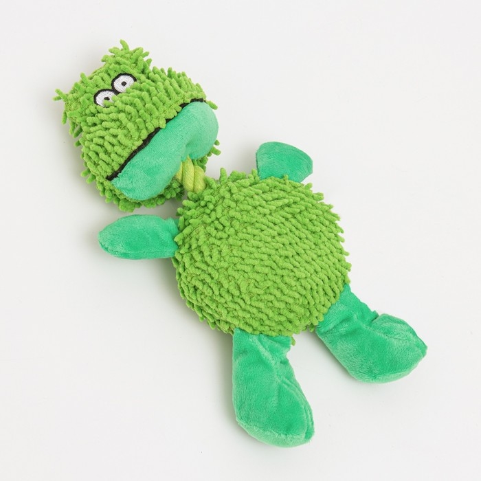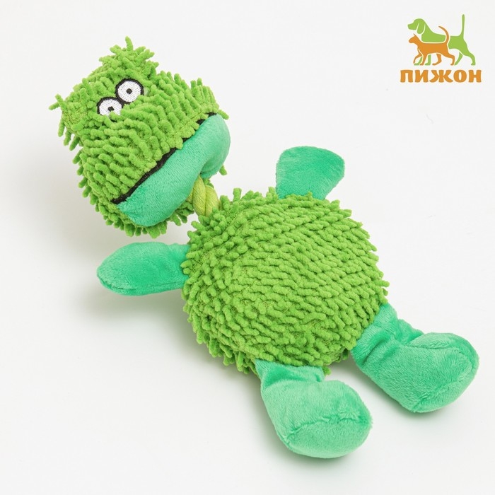 Игрушка мягкая для собак "Лягушка с канатом", с пищалкой, 18 см, зелёная