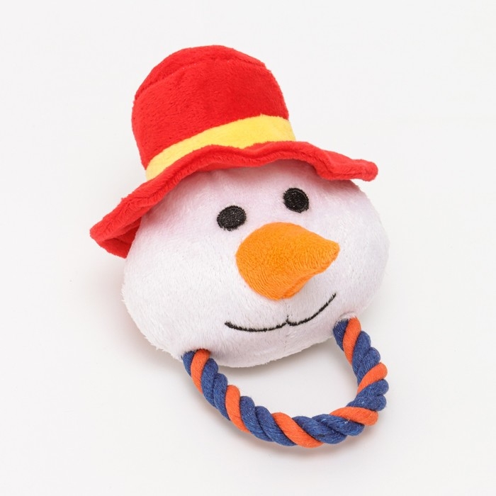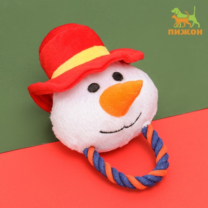 Игрушка мягкая для собак "Снеговик с канатом" с пищалкой