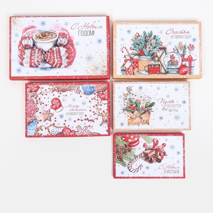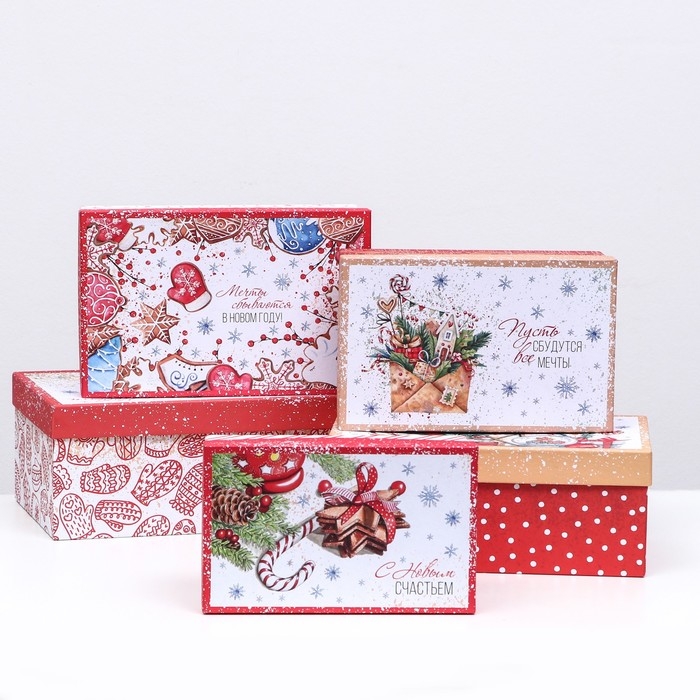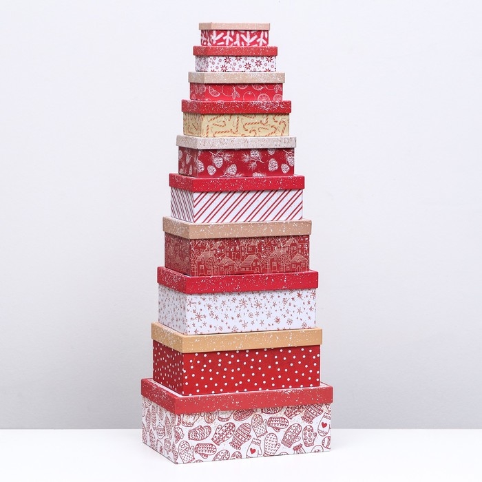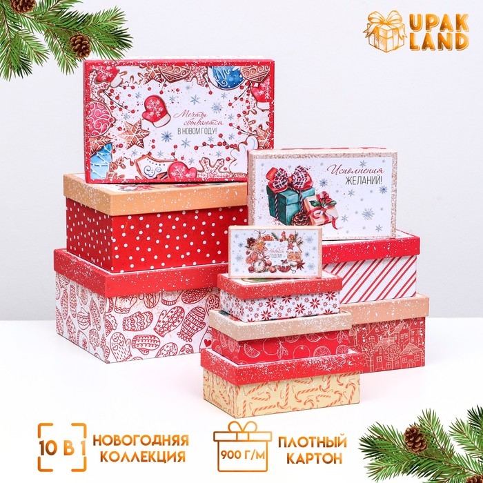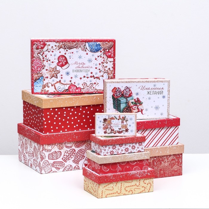 Набор подарочных новогодних коробок 10 в 1 "Исполнения желаний", 30 х 19 х 11,5 - 11 х 6 х 4 см. Новый год