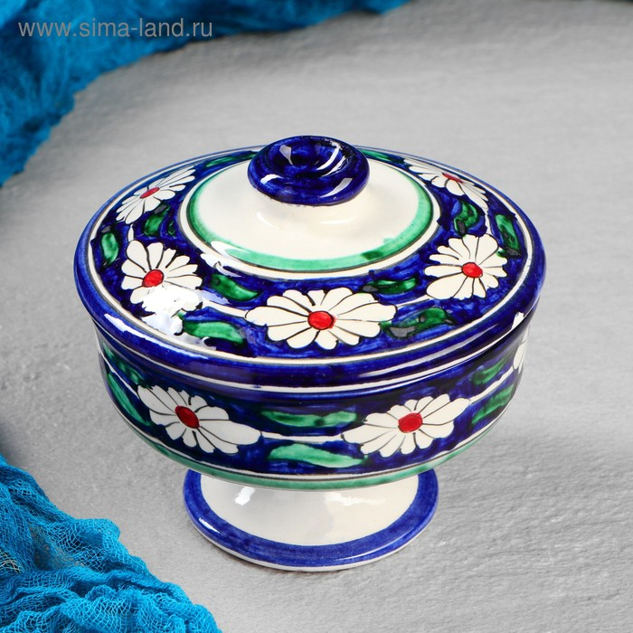 Сахарница Риштанская Керамика "Цветы", 250 мл, синяя