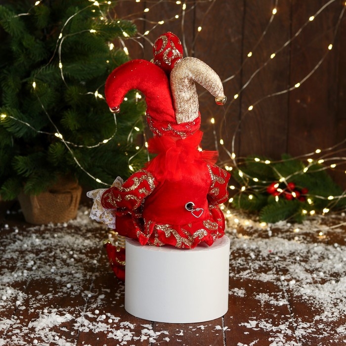 Новогодний шут "В нарядном костюмчике" музыка шевелит головой, 46 см, красный