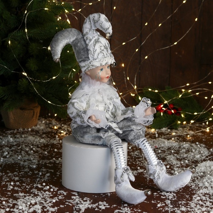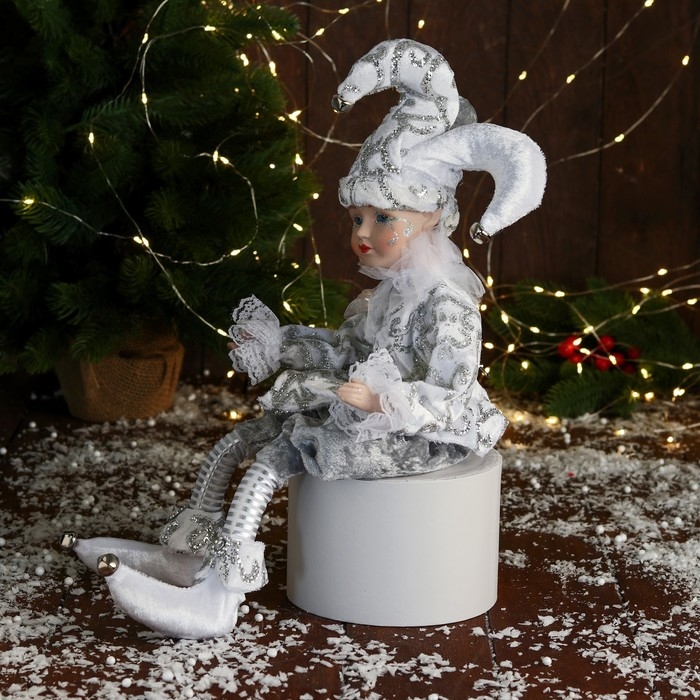 Новогодний шут "В нарядном костюмчике" музыка шевелит головой, 46 см, белый