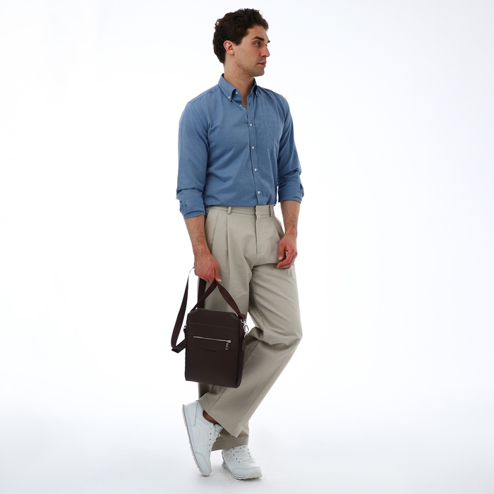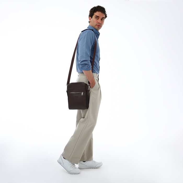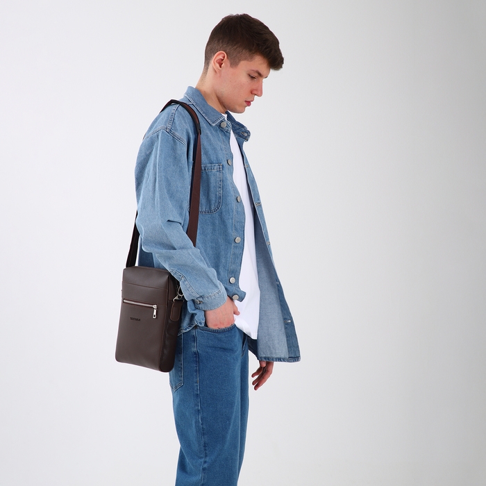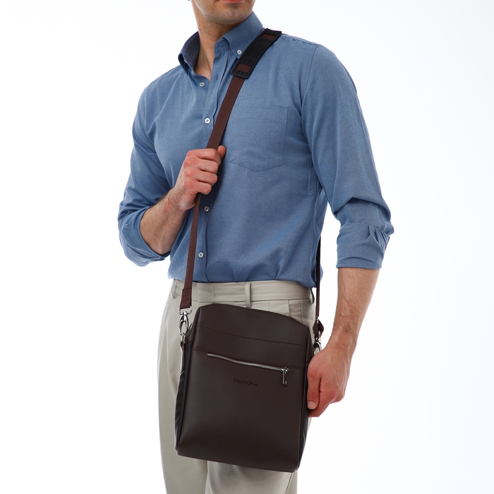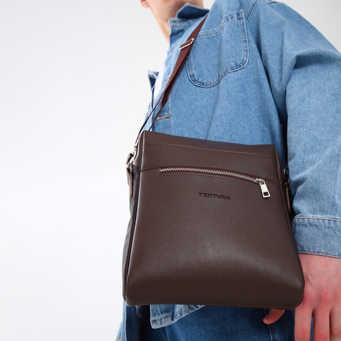 Сумка мужская через плечо TEXTURA, искусственная кожа, цвет коричневый