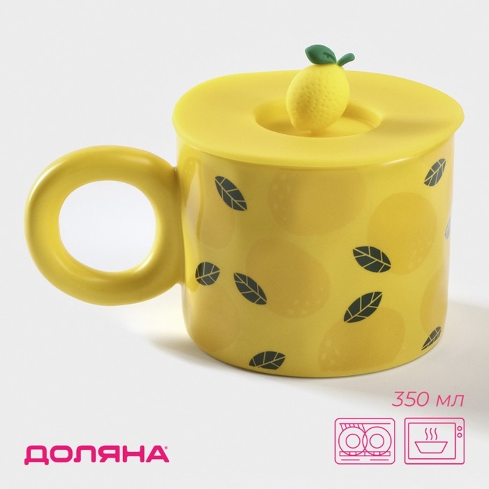 Кружка керамическая с силиконовой крышкой Доляна «Лимон», 350 мл, цвет жёлтый