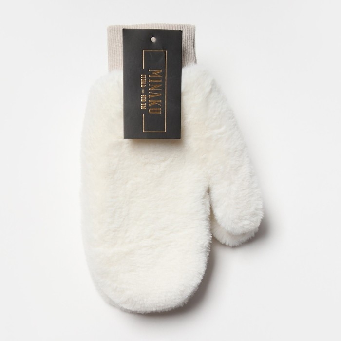 Варежки на иск.меху MINAKU пушистые 25 см молочный