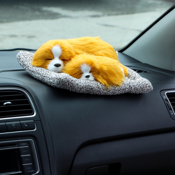 Игрушка на панель авто, собаки на подушке, бело-рыжий окрас