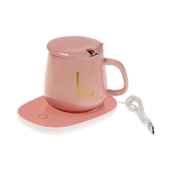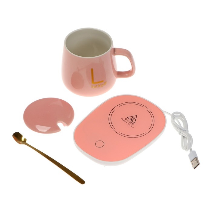 Подставка с подогревом LSK-1501, кружка, от USB, 16 Вт, розовая