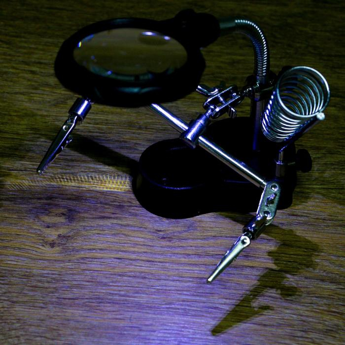 Третья рука для пайки 3,5х 12х, d=65 мм, подсветка, 27х9 см