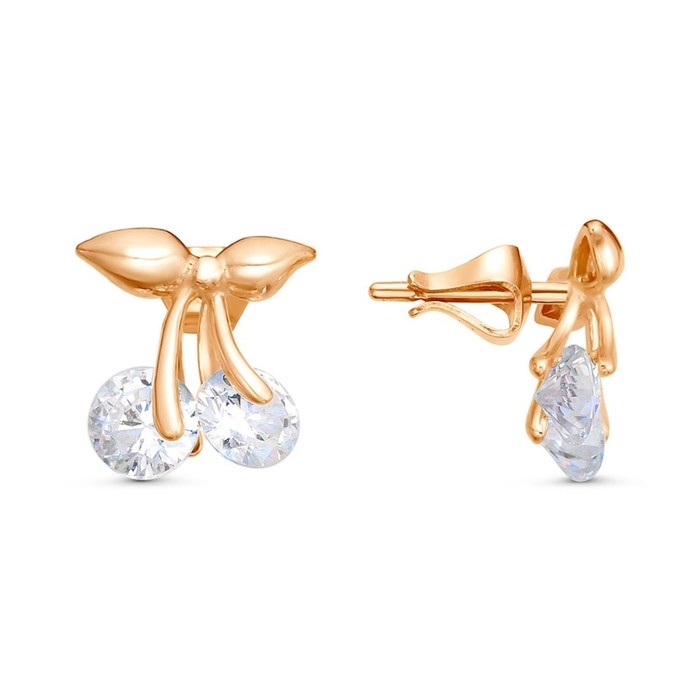 Пусеты «Вишенки», розовое золочение, цвет белый