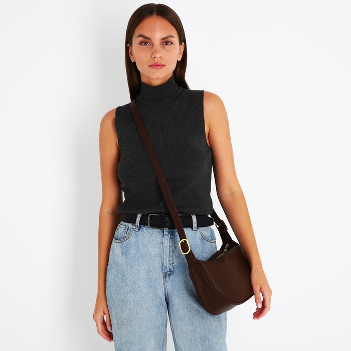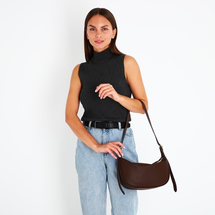 Сумка-багет на молнии, цвет коричневый