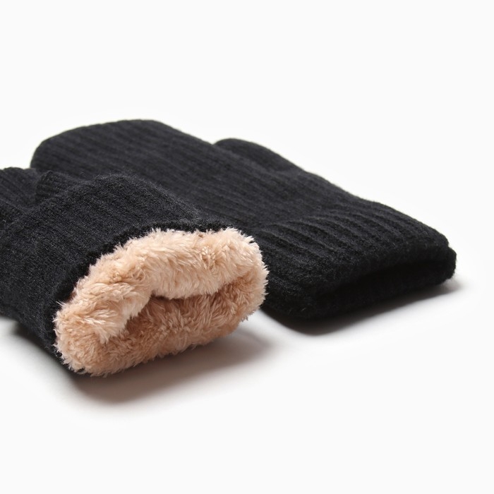 Варежки женские на иск.меху MINAKU рубчик 22 см черный