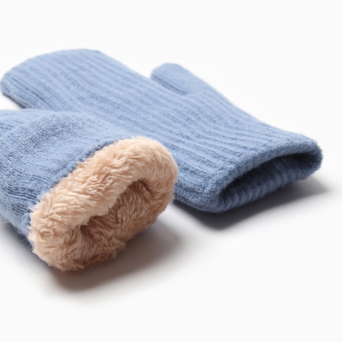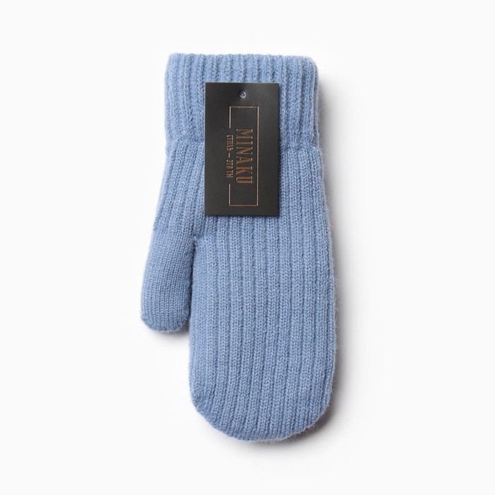 Варежки женские на иск.меху MINAKU рубчик 22 см голубой