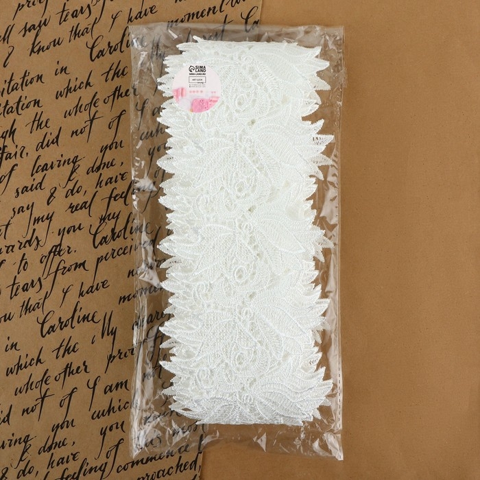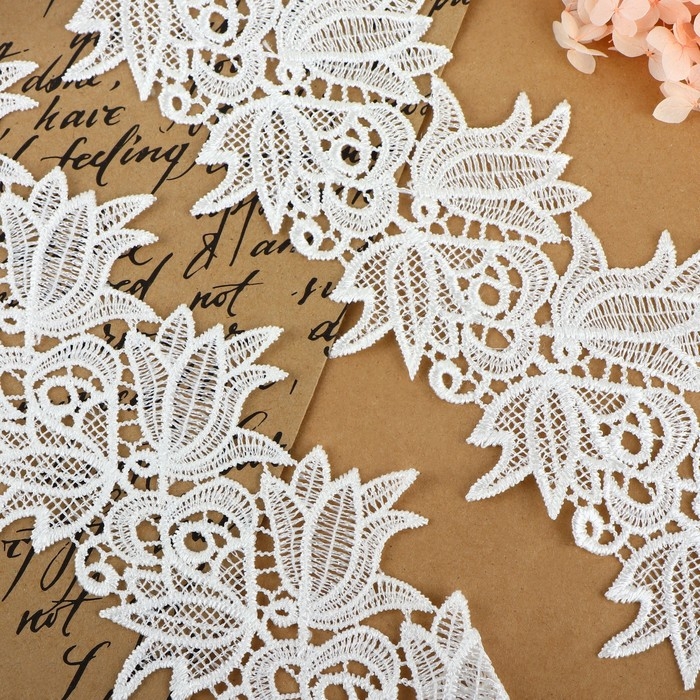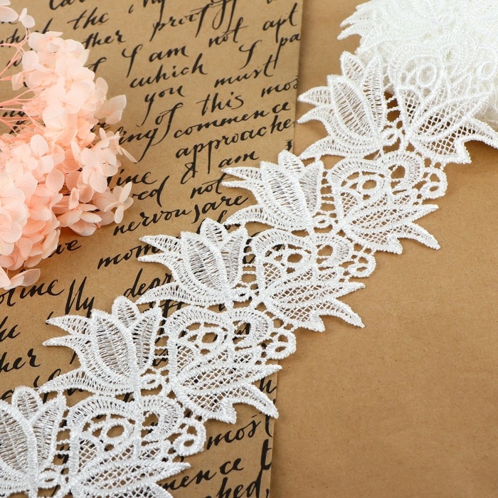 Кружево гипюровое, 90 мм × 9 ± 0,5 м, цвет белый