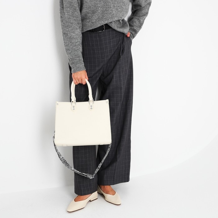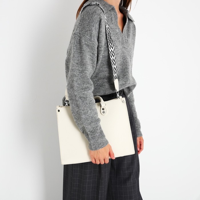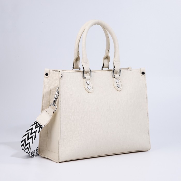 Сумка женская тоут на молнии, цвет белый