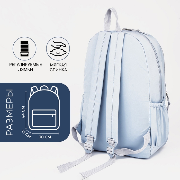 Рюкзак школьный из текстиля, 3 кармана, цвет голубой