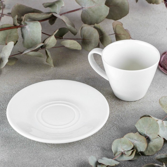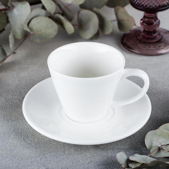 Чайная пара фарфоровая Wilmax, 2 предмета: чашка 180 мл, блюдце d=14 см, цвет белый