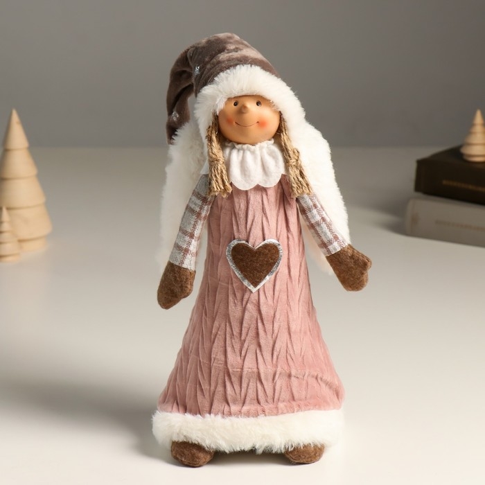 Кукла интерьерная "Ангелочек Марфуша в розовом вязаном платье с сердечком" 35 см
