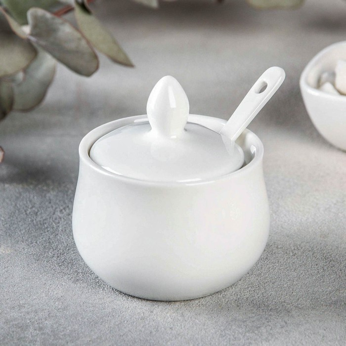 Соусник фарфоровый с ложкой Wilmax, 130 мл, d=7 см, цвет белый