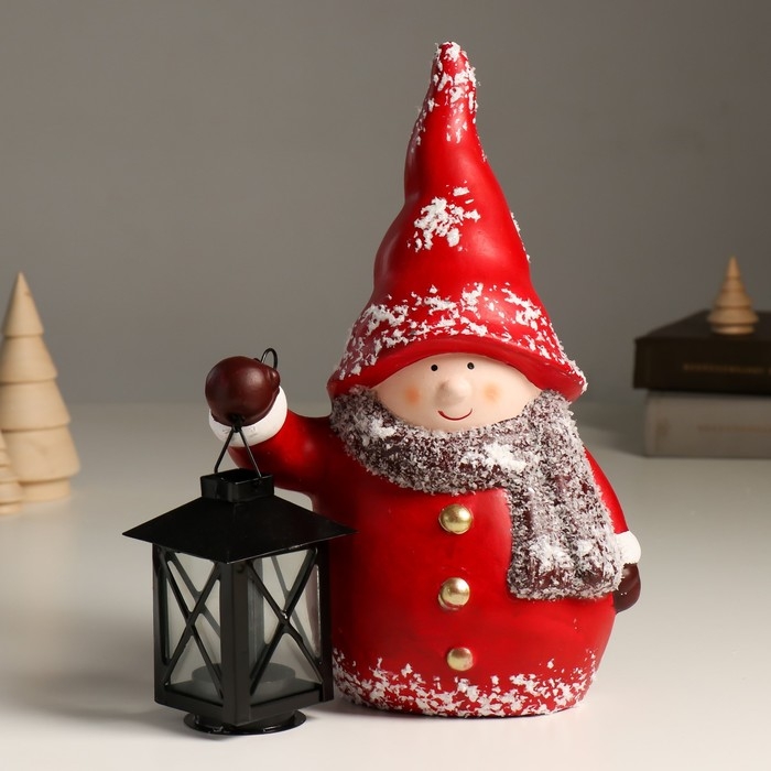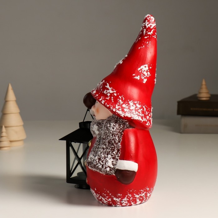 Подсвечник керамика "Малыш в красном наряде, с фонарём" 17х11х28 см